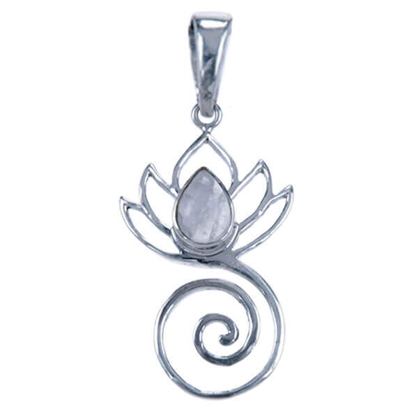 Zilver lotus hanger met maansteen (3036MS)